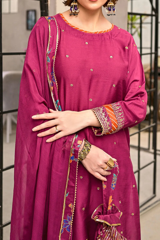 WOMEN'S-3 PIECE EMBROIDERY VISCOSE | DPV-214