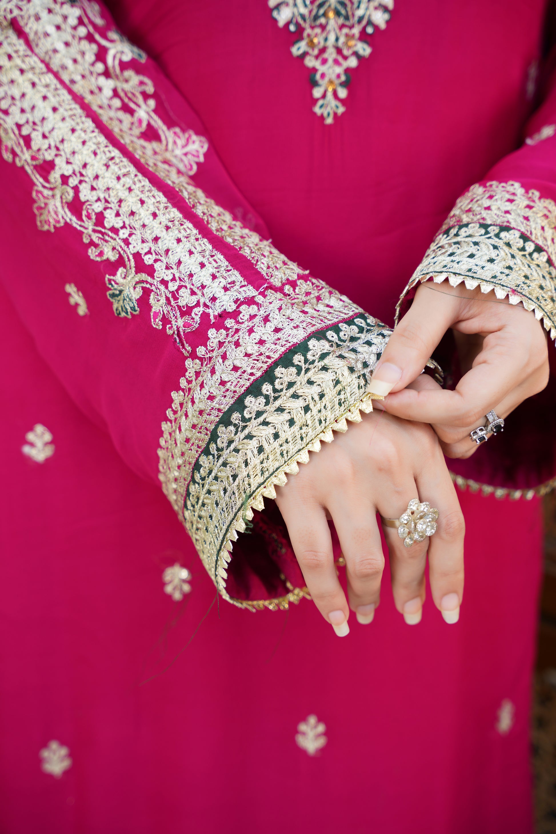 Indulge in the richness of ethnic elegance with our Burnt Pink Chiffon article heavily embroidered with thread zari and sequins, The design is an ethnic masterpiece with gorgeous composition. It comes with garara and an embroidered chiffon dupatta.